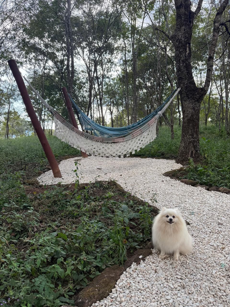 No meio do bosque um redário que é um convite a se reconectar com o essencial. Ouvindo o cantar dos pássaros ao lado de quem você ama, com a companhia do seu pet é o lugar perfeito, onde se pode deixar as preocupações de lado.