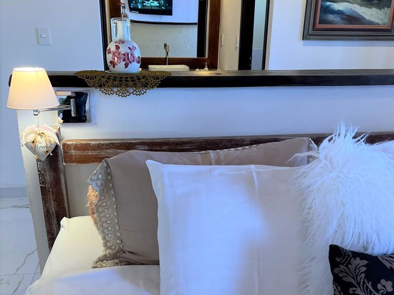 Com 76m² de área construída, dispõe de cama super king size. Ar Condicionado, Enxoval 400 Fios Egípicios, TV LCD62, 120 canais de TV por assinatura em HD, Wifi, Closet, Passadeira Elétrica Profissional, Ducha Higiênica, Banho com Aquecedor Solar, Jacuzzi externa coberta para o Casal com Aquecedor Solar, Amenities, secador de cabelos, Sala de estar com mesa para uma refeição a dois ou familiar, Frigobar Retro Cafeteira e Chaleira Elétrica.
